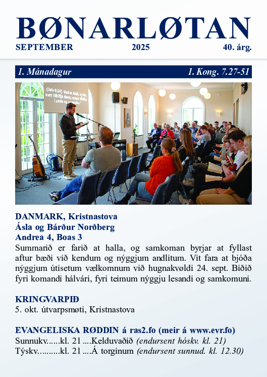 Bønarløtan05/09/2025 Bønarløtan september 2025 – TAK NIÐUR https://betesda.fo/wp-content/uploads/2025/09/BL_2025_09-pdf.jpg 746 529 Stig Elttør https://betesda.fo/wp-content/uploads/2018/11/Betesda-logo2.png Stig Elttør2025-09-05 12:40:092025-09-05 12:40:09Bønarløtan
