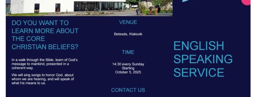 English speaking service will be today at 2:30 pm at Betesda Klaksvík