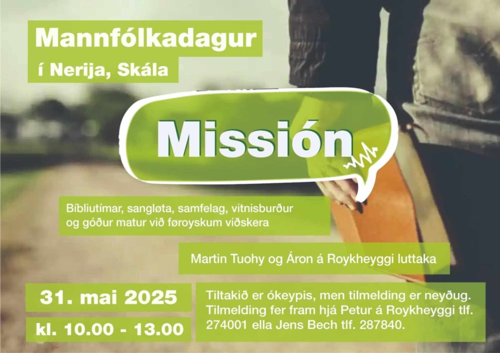 Mannfólkadagur í Nerija á Skála leygarmorgunin 31. mai kl. 10-13.